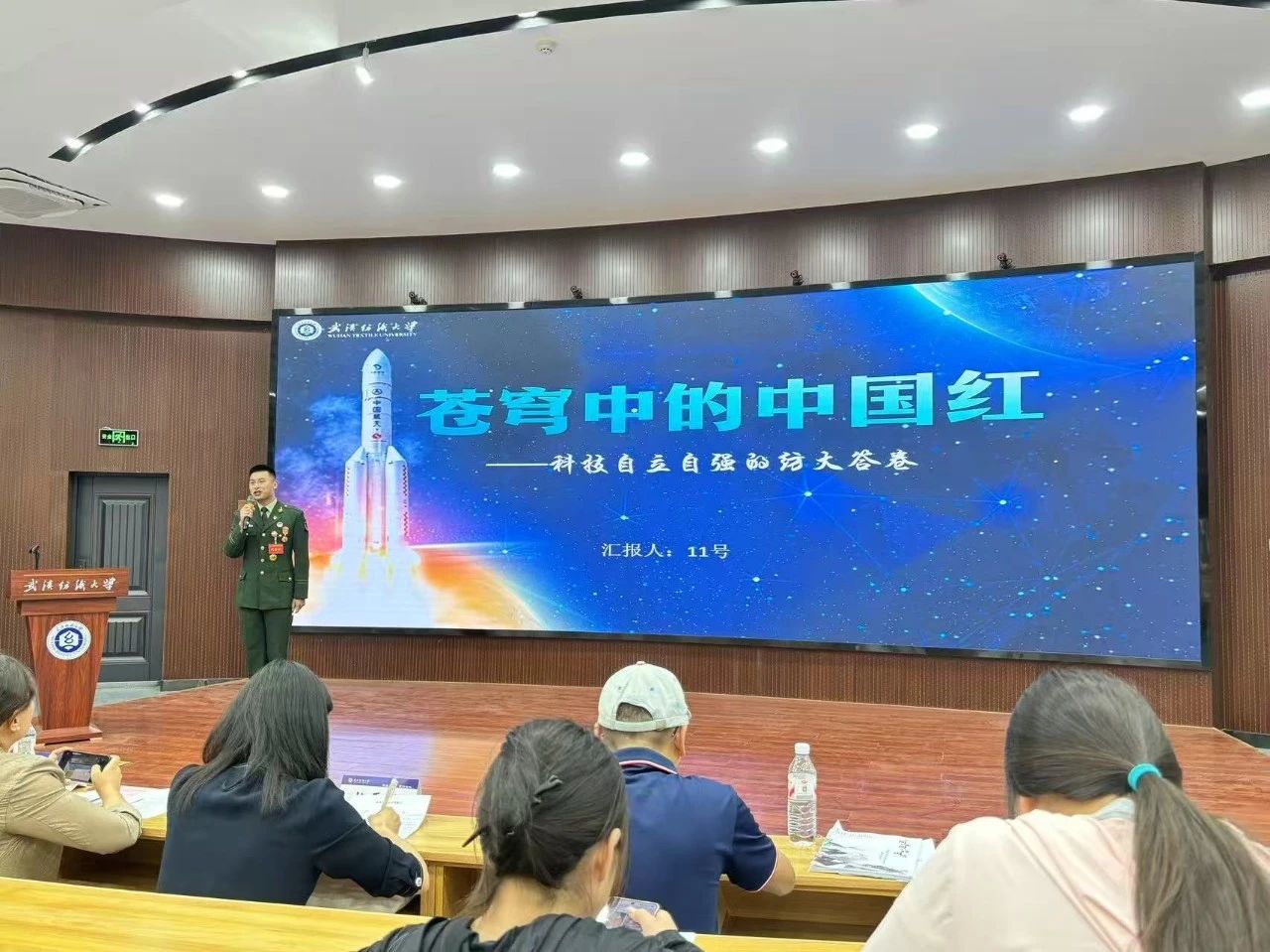 决赛中,吴茂林以“苍穹中的那一抹红画作——科技自立自强的纺大答卷”为主题,围绕习近平总书记在人民大会堂接见探月工程嫦娥六号任务参研参试人员代表时发表重要讲话和习近平总书记关于加强和改进民族工作的重要思想展开宣讲,分别展示了公司在科技自立自强方面的成就,以及荆楚大地中华民族多元一体的内涵。