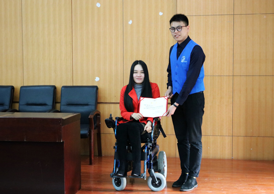 南湖校区主楼T201内场座无虚席,还有不少校外慕名前来凝听的师生。演讲中,董明以自身的经历诠释了“不忘初心”、“坚持”、“感恩挫折”、“奉献”等关键词。她谈到童年的意外,经历了从一个热爱运动想为国争光的小姑娘,到一级伤残只能与轮椅为伴的变故;家中亲人为了给自己治病卖掉家中房屋,到后来被骗,沦落到只能与乞丐同住;因为自身残疾而被不平等对待的种种。整场报告,她从始至终都是以最纯净的微笑诉说着这一切,以一种温柔而坚定的语气讲述她的故事。她说:“我微笑不是我没有痛苦,是我不愿冷落快乐;我不哭泣不代表我没有心酸,是我的微笑更加美丽;我不愿放弃不是没饱经沧桑和磨难,只因生活一直这么美好”。董明用她的亲身经历告诉在场老员工们要感谢挫折,不管生活环境有多么恶劣,都不能影响追逐梦想的脚步。