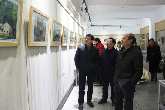 (师生们一同参观作品展)