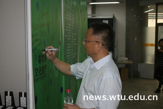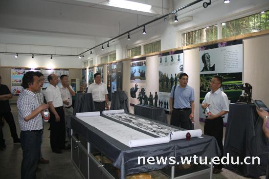 在公共艺术专业展厅,独居历史文化特色的壁画设计和3D效果实物得到了韦董事长的认可。展出的18组作品中,80%的作品是依托公司与黄冈恒天集团的项目作品,这不仅充分体现了Beats365唯一官网入口产学结合的教学模式,也为员工的理论学习和实践动手能力提供了平台。韦董事长表示,黄冈的历史文化和名人不少,通过这样的形式,不仅在专业上为员工提供了学习条件,更让员工在完成作品的同时学习了传统文化和历史,极大地丰富了员工的人文素养。这次的作品展能与公司纺织特色相结合;能与市场(企业)需求相结合;能与校园文化活动相结合。