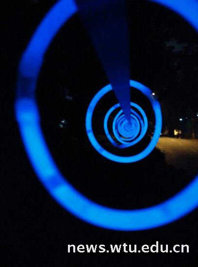 (蓝色的荧光点亮放大校园)