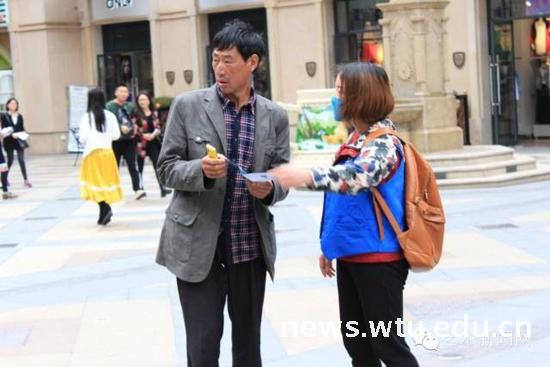(志愿者向路人介绍自闭症日)