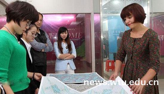 这是公司是第一次参加此种类型的展会,创新团队的教师们不但仔细咨询各参展商的创作思路、设计来源,也针对国内外不同风格的面料设计与国内外的设计师们展开了积极的交流和讨论,同时走访和考察了南通当地的部分面料设计公司。