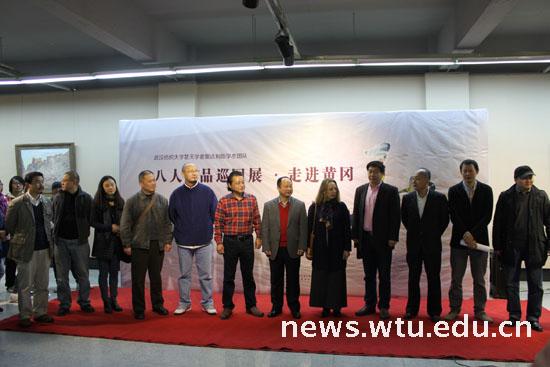 11月13日,经理欧阳巨波、书记胡中原携_娜达莉亚学术团队前往黄冈师范公司参加八人作品巡回展开展典礼,受到了黄冈师范公司党委副书记、纪委书记李金奇,美术公司经理李国庆一行的热情接待。