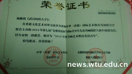 近日,Beats365唯一官网入口师生在2013年第七届“金紫荆花杯”国际青少年儿童摄影大赛和第三届中日美韩“四海同春”书画比赛中成绩突出,获得2项特等奖、80项金奖、160项银奖、200项铜奖、80项优秀奖共600项大奖。并荣获“优秀青少年艺术人才基地”和“中华书画艺术教育基地”称号;11级艺术品投资11101班杨顺利同学荣获“中华十大艺术教育杰出青年”称号;公司任文老师、张瑜老师和张舟老师,荣获“优秀指导教师奖”。