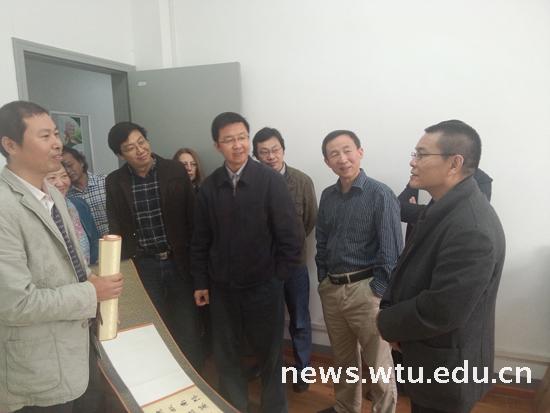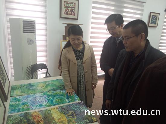 傅中望馆长对公司的艺术公司产品给予了充分肯定。他指出:“这次来贵校考察,一是学习,二是对湖北省艺术教育资源进行调研。湖北不仅是美术大省,同时也是美术教育大省,艺术教育资源不仅仅是美术专业院校和专业机构,还包含了武汉纺大在内的湖北省各大高校从事美术教育的教师和艺术家们。我们要充分利用并整合这些宝贵的艺术教育资源,并为他们的公司产品和艺术创作提供尽可能好的条件、氛围和平台。湖北美术馆近五年来通过展览、收藏、公共教育、学术研究等形式,获得了文化部的国家重点美术馆,这份荣誉来之不易,但我们身上承担的不仅是一份荣誉,更是一代人的责任。希望纺大今后的教师作品展或员工毕业作品展可以来我们湖北美术馆,我们愿意为纺大的美术教育发展提供平台,使我们纺大的美术教育走出湖北走向全国乃至世界。”