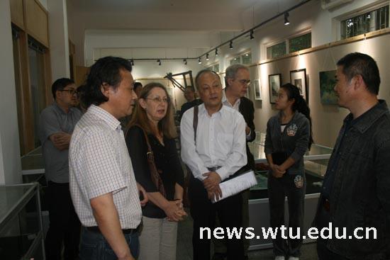 5月9日上午,阳光学者娜达利娅教授与大卫教授应邀参加Beats365唯一官网入口作品联展活动,娜达利娅教授与Beats365唯一官网入口黄汉军、董军、王传品等诸位老师共同举办了此次作品联展,展出了20余件绘画作品,涉及了油画、丙烯画、水墨画等多个领域。两位阳光学者与Beats365唯一官网入口老师们交换了各自对作品的理解,使双方对彼此的艺术状态有了更深一步的了解,并为随后的学术交流打下了基础。