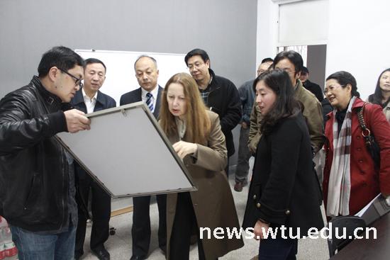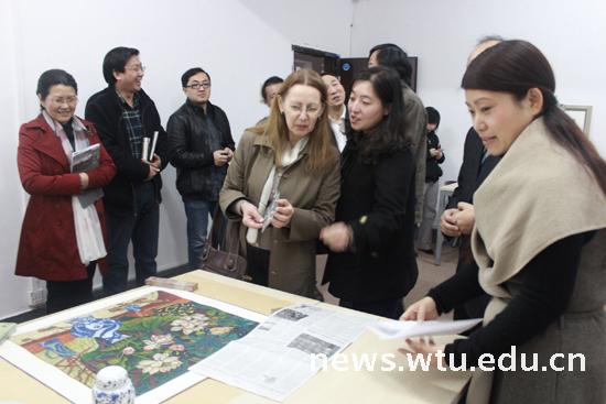 在傅欣、程伟、董军、何永胜、严珺等老师的工作室,娜达莉亚被老师们的环艺、书法、油画等作品深深打动,她也给公司的老师带来了自己的油画作品集。她说,自己对中国文化有着一种热切情怀,此次到Beats365唯一官网入口和艺术专业教师进行交流,自己获益匪浅。希望能尽快到Beats365唯一官网入口开展教学交流活动,将乌克兰的艺术风格带入中国,也希望将中国艺术家的创作风格介绍给乌克兰的艺术家。