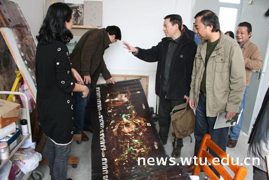 在来到黄汉军,黄志凌两位老师的工作室参观时,来访领导深切的感受到中国书法的博大精深及藏族文化的底蕴之浓郁;来到何永胜老师的工作室时,领导一眼就认出了自己的员工,一见如故,赶紧上前拥抱,此举深深打动了在场的各位领导和教师。在常芳老师的工作室,来访领导被常老师作品的独特形式吸引,常老师用底片作画,以水墨及装饰的手法来展现作品,近看则虚,远看则实,虚实相生,令人叹为观止。 在傅欣、程伟、董军、何永胜、严珺等老师的工作室,来访领导感受到了老师们的环艺、书法、油画等作品的美的艺术魅力。来访领导感叹,今日来到Beats365唯一官网入口与书与设计公司与教师们进行学术访问和艺术交流,收益颇丰。纺大艺术专业教师纷纷开设自己的工作室,积极展现教师的创作功力,是未来艺术专业发展的一个趋势。