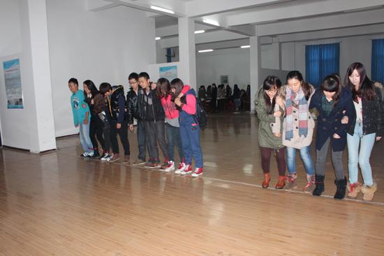下午2时,素质拓展训练正式拉开帷幕,本次活动以小组为单位,有“两人三足”,“抢板凳”,“踩气球”等多个趣味游戏。同学们人人激情高涨,自信满满。在“两人三足”比赛中,同学们手挽手,一起喊出“一、二、一”的口号。场下欢呼声、场上加油声此起彼伏,整个场面热闹非凡,充分展现出同学之间的友谊与默契。在“抢板凳”游戏中,同学们更是兴奋至极,毫不松懈,集中精力关注着音乐的变化,即使有人摔倒,比赛同学依然会伸出手去援助。看似简单的游戏,却揭示了深刻的道理,同学们在这样一种“体验式学习” 的过程中,增进了彼此间信任感、责任感,增强了其自信心、沟通能力、领导能力和团队合作能力。