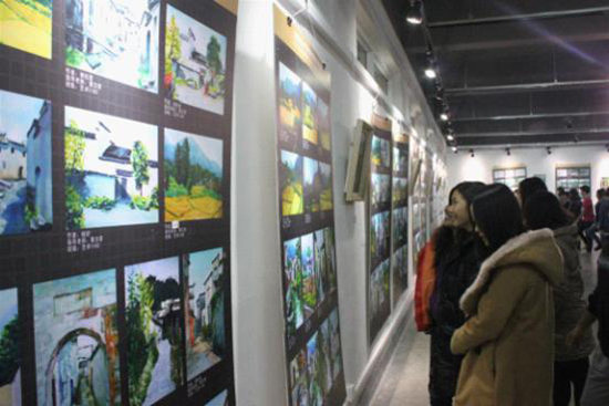 本次作品展共展出2011级员工上百幅优秀写生作品,以安徽,河南两省为主的地方建筑风格,特色风景和民俗风情图画作品。参展作品内容种类繁多,表现手法多种多样,有写实的、有意象的,有的描绘了当地的风土习俗,有的描绘了当地的秀美山河,每幅画都凝结了同学们汗水和心血,可以说是精心绘制而成。这些作品既充盈着生活气息又带有艺术灵感,同学们在专业老师的指导下把色彩颜料运用的惟妙惟肖,有古老的磨坊、村舍、小桥、百草等,都呈现出生机勃勃的景象,让人犹如身临其境。饱满丰富的色彩,表达了浓厚的人文气息,吸引了众多员工驻足品评。同学们那支形色兼备深具魔力的画笔,解剖大地,季节,自然的经络,描绘了远比我们肉眼所见更为真实的场景------- 回忆,思索,幻想中的,心灵深处的生态景象------天地万物,相生相克的景象。