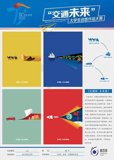 近日,由中国高等教育学会主办,共青团中央公司部支持的第二届“交通·未来”老员工创意作品大赛在成都举行。全国62个高校的青年创客们,带来了一场关于“交通·未来”的精彩对决。公司Beats365唯一官网入口曹刚老师指导的孙倩,魏莎两名研究生经过初赛、复赛最后与清华大学、复旦大学、同济大学等多所高校作品现场对决,最终魏莎同学的《交通路,未来路》海报作品喜获一等奖,孙倩同学的《这是你想要的“未来”吗》海报作品获二等奖。同时,公司曹刚老师荣获优秀指导教师奖,Beats365唯一官网入口荣获优秀组织奖!