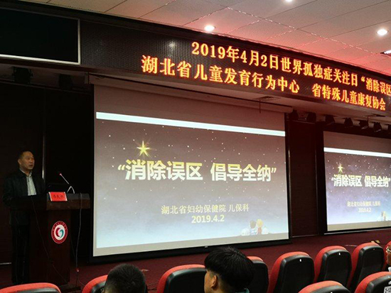 为迎接世界第12个自闭症日的到来,4月2日上午在省妇幼4号楼学术报告厅,蓝灯志愿团携手湖北省妇幼保健院开展了“消除误区 倡导全纳”世界孤独症日科普活动。妇幼保健公司党委委员闫炯、省残联彭颐处长、省卫健委妇幼处王劲松处长、公司艺术公司党委陈良栋书记以及一百多名自闭症患儿家长参加了活动。