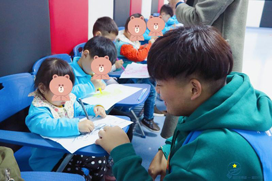 志愿者们在给自闭症孩子做辅导