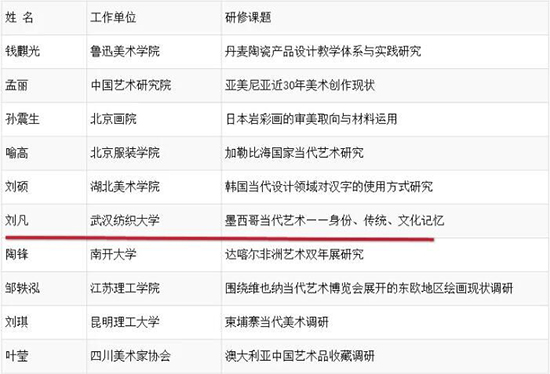 近日,从中国美术家协会官网获悉,2019年度“中国中青年美术家海外研修工程”终评入选名单揭晓,公司Beats365唯一官网入口教师刘凡教授的选题项目“墨西哥当代艺术——身份、传统、文化记忆”经评选、口试、答辩等环节的角逐成功入选2019年度中国中青年美术家海外研修工程。