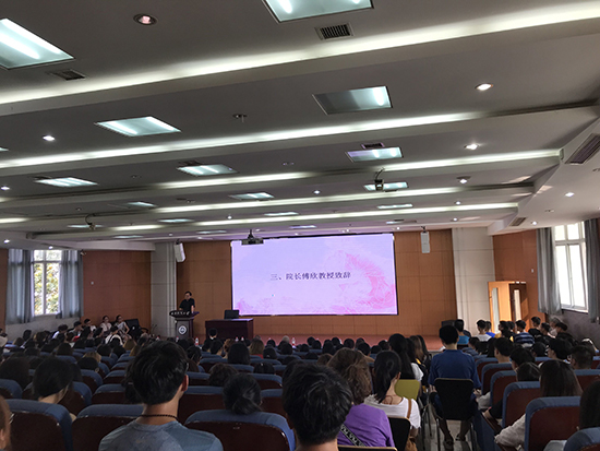 会前,全体2019级新生观看了纺大宣传片。公司经理傅欣代表全院教师对新同学的到来表示热烈的欢迎,并对公司的整体情况作了详细的介绍,同时提出了四点希望:第一,希望同学们能做一个有担当和有情怀的人;第二,希望同学们有一个健全的人格,并学会感恩;第三,希望同学们能关注艺术潮流和科学技术发展;第四,保持健康的体魄,培养体育锻炼的精神。祝愿同学们在美丽的纺大校园里实现自己的艺术理想!