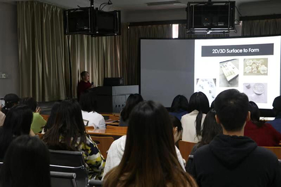安娜教授围绕如何将新技术融入到传统陶艺课程以及如何运用数字技术辅助设计造型等方面进行了讲演,这些创作陶艺作品的方法新颖丰富,引起了师生们的广泛讨论和提问。随后,安娜教授分别介绍了陶艺课程中的新技术的使用规范、数字技术与课程实践相结合的经验等等。她强调,我们这些将新技术融入传统陶艺课程的人,常常觉得自己是在一个未知的领域旅行。安娜教授从技术、工艺等角度阐释了陶艺中混合材料的使用,提到了陶艺作品的实用功能及审美功能,安娜教授结合自己的观点,对此进行了深入剖析。讲座结束后,同学们抓住难得的机会向安娜教授请教陶艺数字技术使用的相关问题,现场气氛十分活跃。