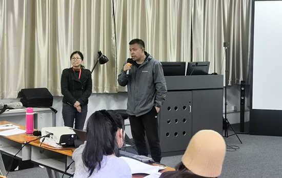 公司曹凯副经理在致辞中表示,VR虚拟现实技术目前已应用越来越广泛,不久的将来,它一定会成为在提高设计效率、营造交互环境、强化艺术展示效果方面的主力军。通过本次比赛的平台,让环境设计专业的同学们相互学习和交流,了解和掌握VR交互技术、制作VR场景等。希望同学们顺应时代潮流,学习先进技术,只争朝夕。