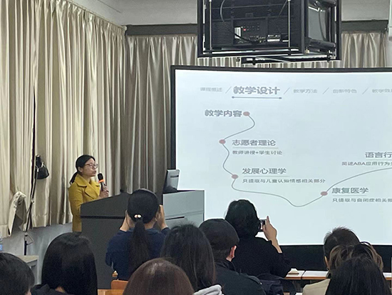 周老师是蓝灯志愿团创建的发起人之一,也是该团的指导老师。她分享了自己在10年的服务之中,积累了大量的经验。产生了把蓝灯课程体系打造成为人文通识课程想法。通过把艺术学、心理学、社工学、康复学等多学科、跨专业结合起来,打造具有艺术特色的蓝灯创新融合课程。