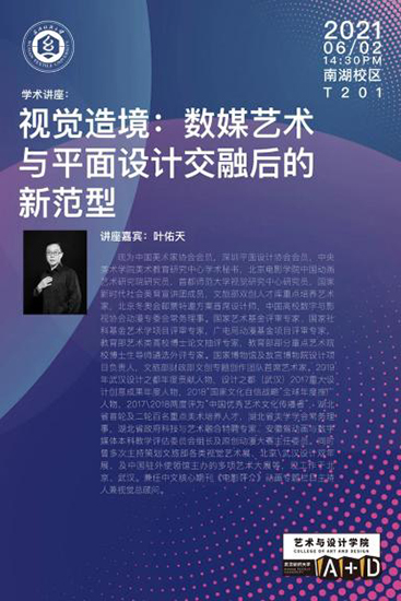 现为湖北美术公司教授的 2001届叶佑天,在讲座中结合自己设计创作历程,作了一场题为《视觉造境:数媒艺术与平面设计交融后的新范型》的讲座,幽默风趣地分享自身创作案例的同时,也让员工明白了在当今快速发展的时代下,设计跨专业意识的重要性。并强调要喜欢设计、热爱设计。要注重思考、方法及生活感悟的提炼,倡导培养创新性思维。