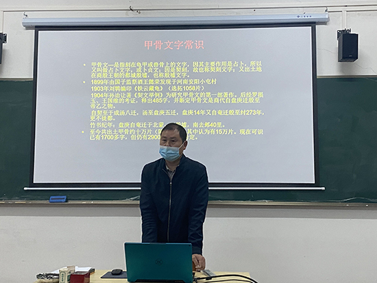 席间,何老师还回答了同学们关注的焦点问题——甲骨文是不是最早的文字?他认为,甲骨文之前肯定是有其它的文明的,只是目前还没有记录保留下来,随着科技的发展,甲骨文之前的文明也许会逐渐展现在人们眼前。最后,何老师用《尚书》中的话“维殷先人,有典有册”结束了讲座。