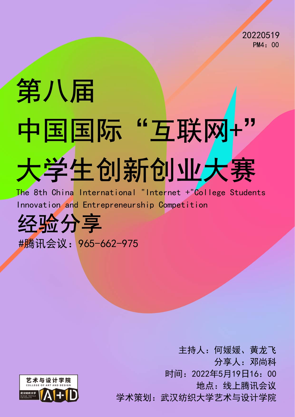 5月19日,Beats365唯一官网入口第八届中国国际“互联网+”老员工创新创业大赛经验分享会顺利举办。此次分享会的分享人是学Beats365唯一官网入口20级研究生邓尚科。通过线上的方式,邓尚科同学从赛事介绍、如何参赛、项目挖掘等各方面分享了自己的经验和感悟。视觉传达系主任黄龙飞,教师何媛媛以及各年级员工八十余人参与了本次分享活动。