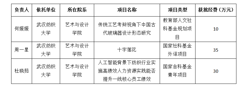 2022年,公司的科研工作取得了重要进展。两个团队均在国家级项目申报上取得了突破性进展。设计学团队中,何媛媛博士获批教育部人文社科基金规划项目《传统工艺考辩视角下中国古代玻璃器设计形态研究》。艺术学理论团队中,周一星博士的《十字莲花》获批国家社科基金外译项目、杜晓茹博士的《人工智能背景下纺织行业实施高绩效人力资源实践能否提升一线核心员工绩效》获批国家自科基金青年项目。本次获批的国家项目涵盖国家社科基金外译项目、国家自科基金青年项目和教育部人文社科规划项目,在公司申报史上均实现了该基金领域的零突破,纵向项目获批直接经费共计75万元,获批经费金额创公司历史新高。