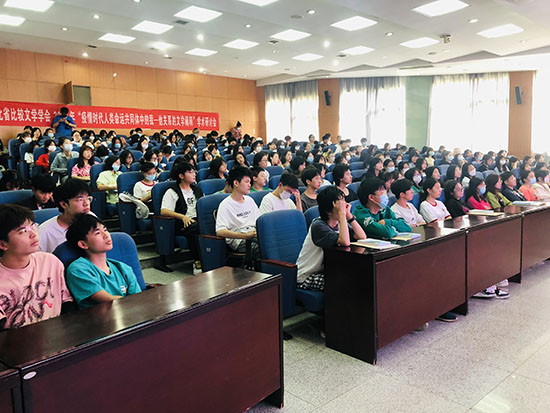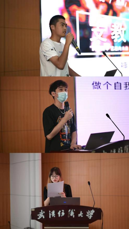 老生代表、2020级本科生何汶宪向新生们讲述了自己入校以来的成长与思考,结合自己入伍和参加暑期社会实践支教经历,鼓励新生们珍惜老员工活,心存敬畏、勇于尝试、坚持阅读、积极投身观察和实践;将小我融入大我,在大学中学会承担责任,适应社会、描绘自己的精彩人生。