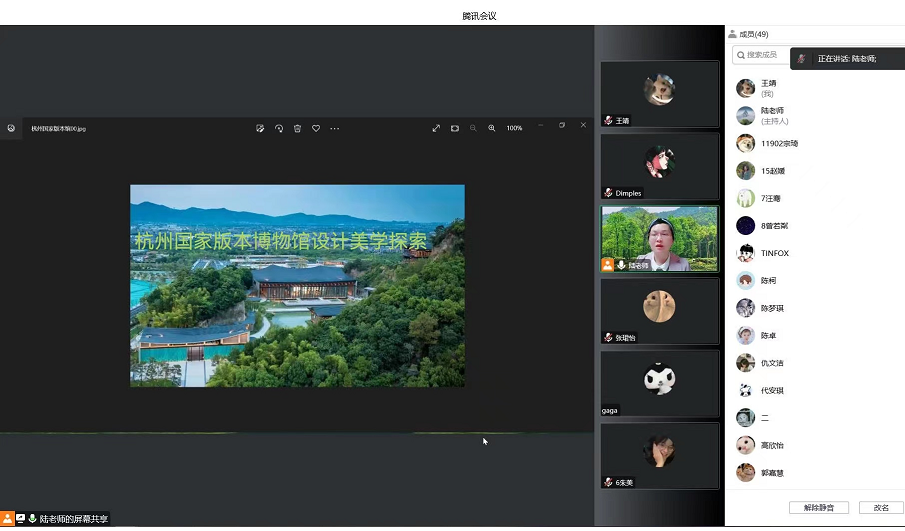 论坛进入尾声时,同学们纷纷为杭州国家版本馆设计的高超水平点赞,增强了对中国传统建筑和园林文化的自信。陆老师建议大家不仅要多看、多研究当前国内外一流的建筑大师的建筑作品和景观设计,还要多读中国古典园林建筑设计典籍,如《考工记》、《营造法式》、《天工开物》、《园冶》、《长物志》等,这样今后才能设计出具有中国东方底蕴的现代环境艺术设计作品,满足国内日益增长的多元环境审美需求。本次论坛,论题的研究对象新颖,内涵深厚,对当今设计深有启发,师生均表示受益匪浅。