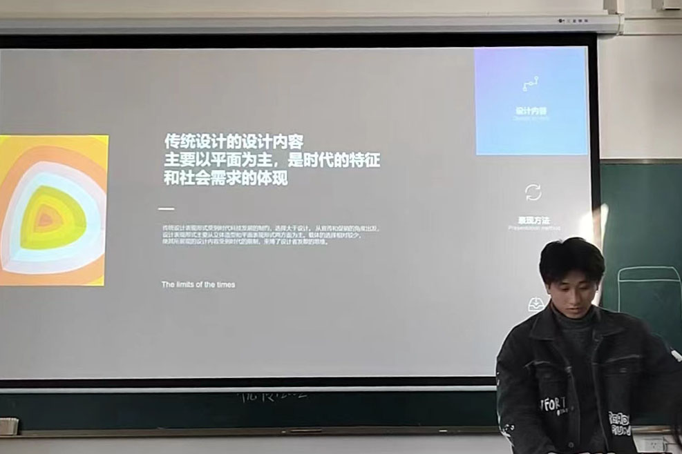 李梦佳同学以《时下·当燃-在“颠覆”中引领时代》为题,分享了当下全新的观念和设计想法。