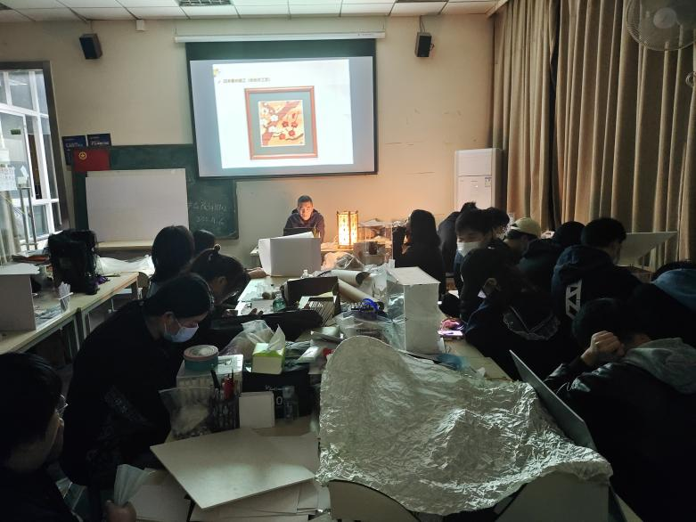 论坛开始,首先由吴磊老师向同学们讲述了关于“组子”的含义,通过:材料、色彩、应用等方面给同学们呈现了丰富的“组子”形象,期间重点讲述了工艺的材料美丽、造型设计美等。
