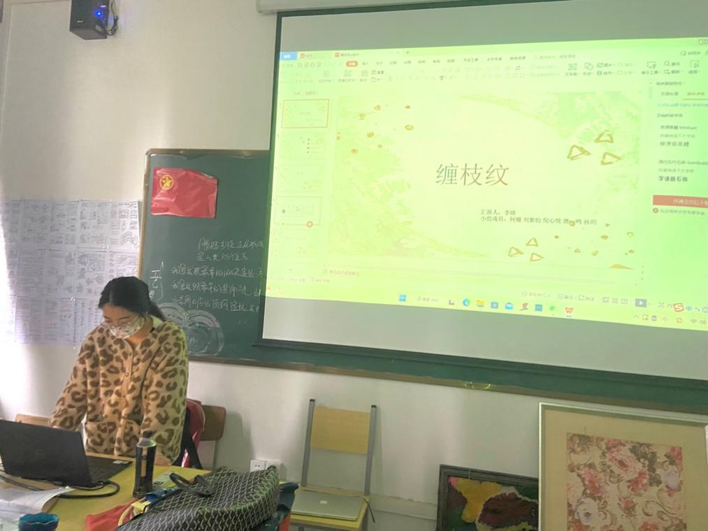 工艺美术11902班倪心悦组的同学们阐述分析了“缠枝纹”的前世今生,并结合考察案例和个人创作案例表达了对传统图案活化当下的展望。