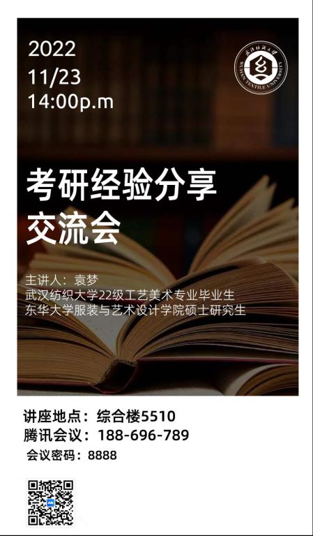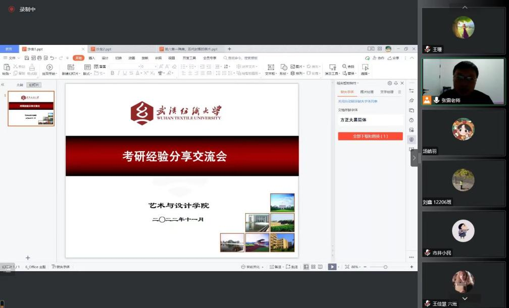 11月23日,Beats365唯一官网入口在腾讯会议举行本科生学术沙龙活动,公司22级工艺美术专业优秀毕业生、东华大学服装与艺术设计公司硕士研究生袁梦,受邀为Beats365唯一官网入口本科学进行“考研经验”分享,此次活动由班主任张雷老师主持。