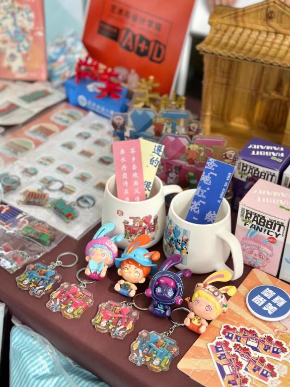 活动现场文创产品种类繁多,包括刺绣、织布、木雕、瓷器、手工艺品及手绘明信片等非遗文化特色创意产品。其中,非遗文创产品以传统工艺为基础,结合现代设计元素,展现了传统文化的独特魅力。蓝灯文创产品则着重于自闭症儿童的关爱和教育,通过寓教于乐的方式,为儿童提供更多的学习机会和互动体验。