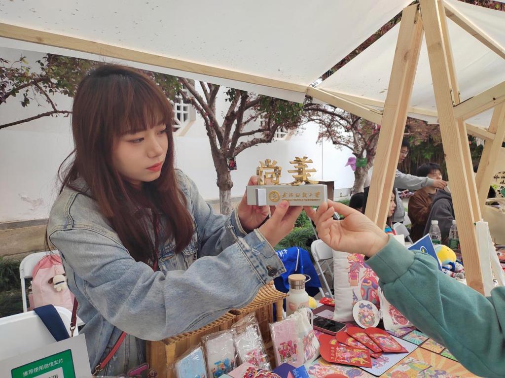 活动过程中,同学们热情介绍纺大校园文化,耐心讲解每一个文创产品的设计灵感来制作工艺,重点展示了纺大校园文创和蓝灯关爱自闭症儿童文创的特色和优势,展现出了良好的精神面貌和扎实的专业素养,得到了游客和兄弟高校一致好评。