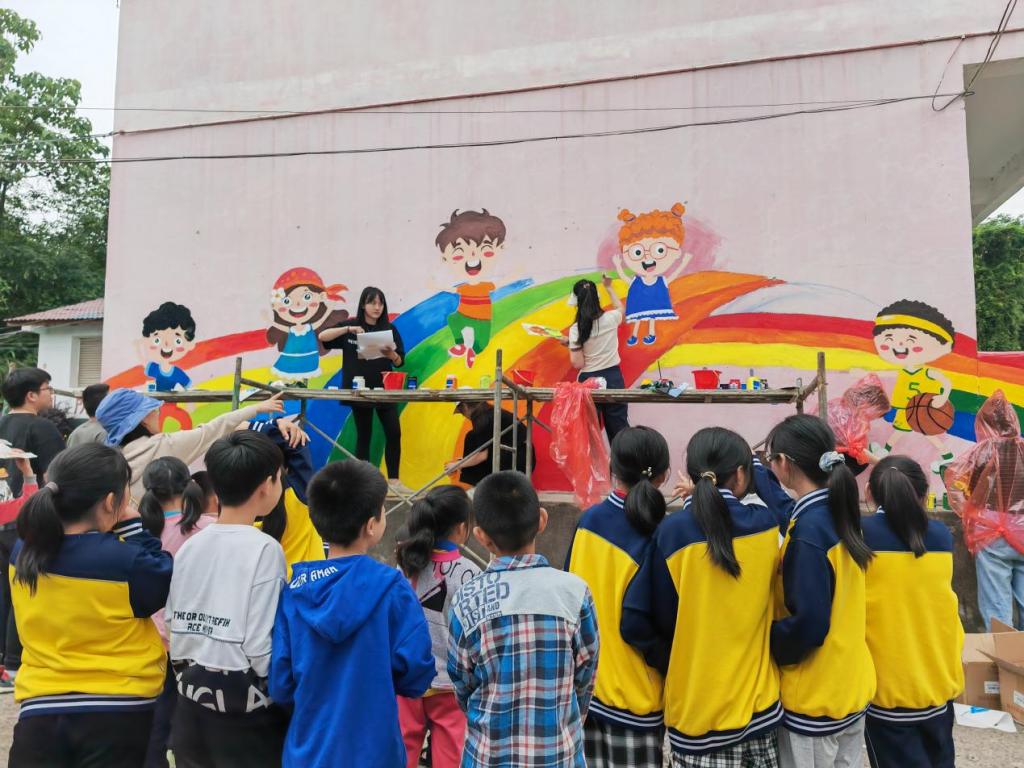 本次活动的员工负责人、研究生第一党支部党员朱哲闻同学说:虽然现场条件艰苦,天气炎热,蚊虫很多,但通过自己的双手,践行志愿服务精神,让我倍感荣幸,希望王要小学的同学们如同画作一样,追逐梦想,乐观开朗,每一天都会有彩虹。”