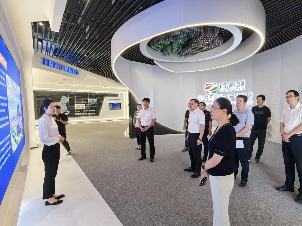 在首衡城·华中国际食品产业新城项目部,首衡城孝感项目总经理罗建永向傅欣一行介绍了项目概况,带领观看了首衡城展览馆和施工项目全景。双方就行业发展前景、人才需求情况进行了交流。