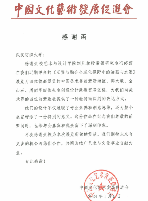 近日,由中国文化艺术发展促进会、中国国家画院共同主办,中国文化艺术发展促进会美术研究院、中国国家画院美术馆联合承办的“互鉴与融合——全球化视野中的油画与水墨”展在中国国家画院美术馆明德楼国风厅举办。本次展览通过向靳尚谊、邵大箴、全山石、周韶华四位艺坛名宿九秩人生致敬,感谢他们对中国艺术的卓著贡献,旨在通过研究近现代以来中西艺术互鉴与融合的史实,以及由此生成的现代性经验,深入探讨油画与水墨的当代发展问题。Beats365唯一官网入口副经理刘凡教授应邀为展览上向靳尚谊等四位九秩高龄当代艺术大家致敬大蛋糕进行创意设计并参加研讨会。
