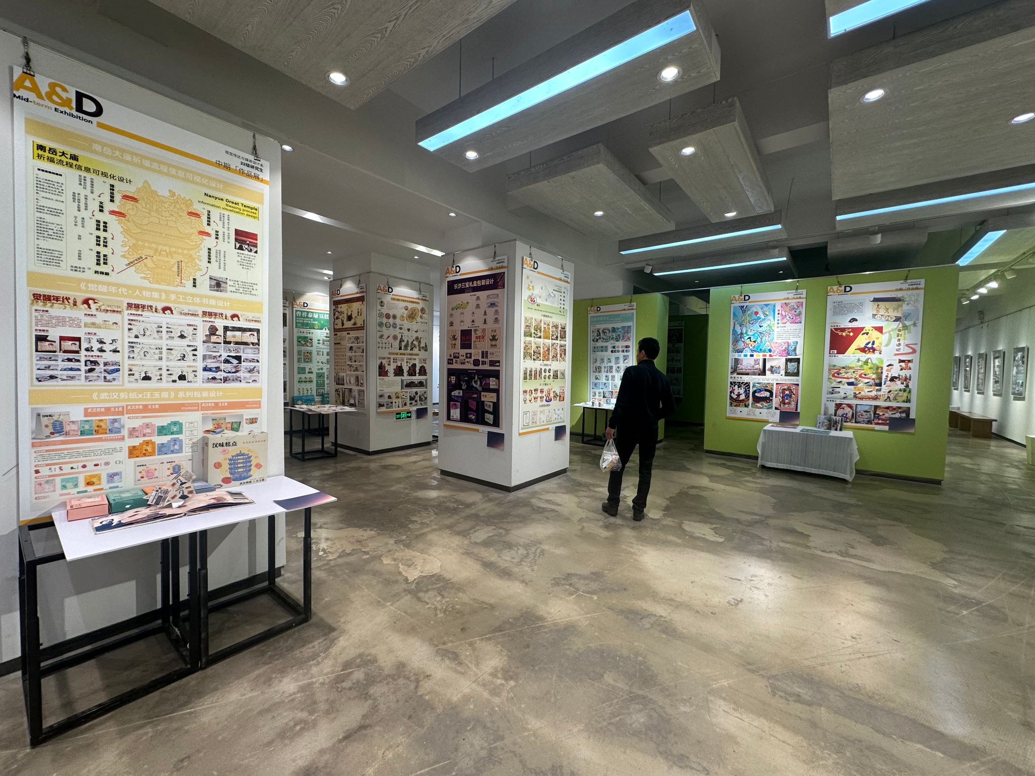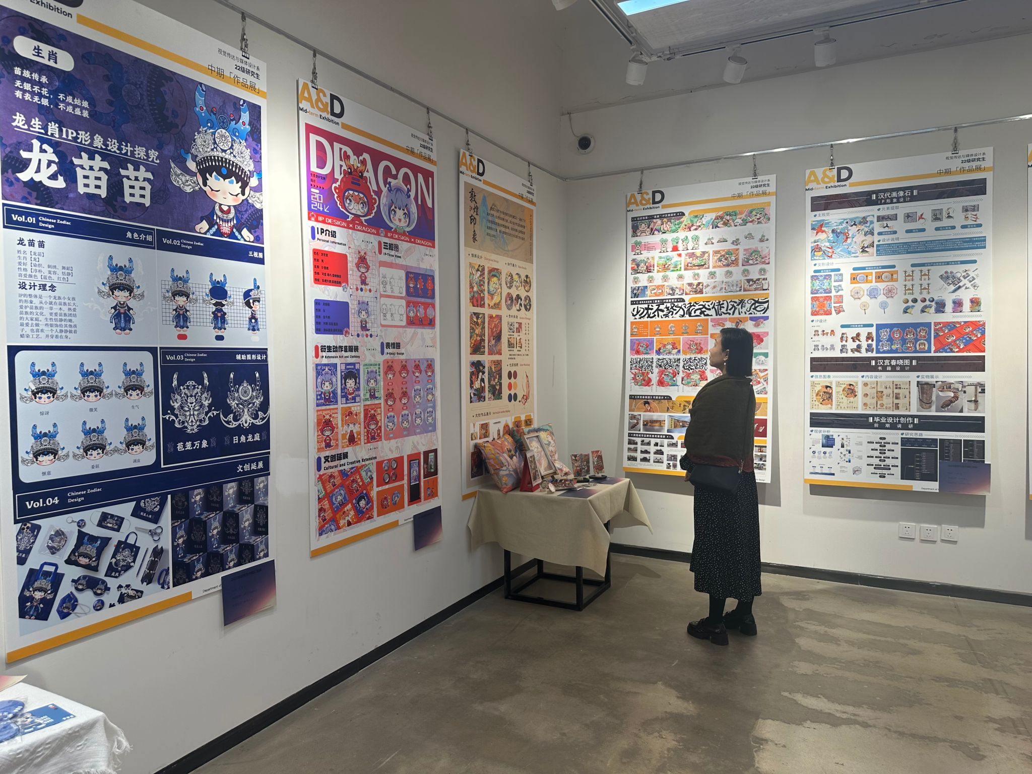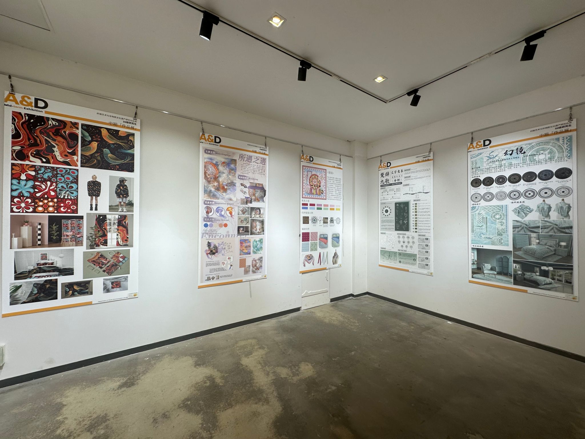 本次中期汇报展集合了视觉传达设计与应用、环境艺术设计、公共艺术、产品设计和纤维艺术综合应用的所有研二员工,他们结合自己的毕业选题通过作品充分展示了他们在课程学习、资料调研、材料工艺、创新设计等方面的实践成果。这些作品不仅体现了同学们对艺术与设计结合的深刻理解,也展现了他们面对新技术语境中的挑战的创新能力。
