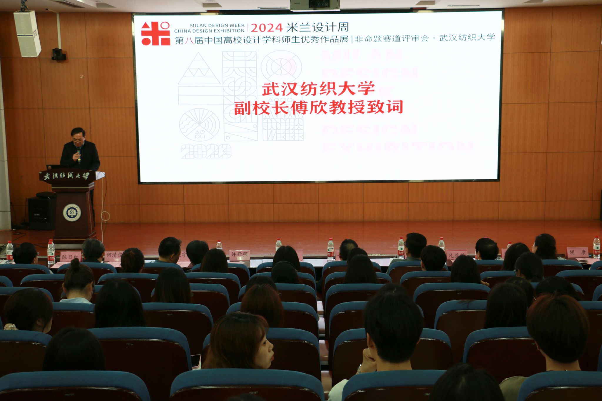 傅欣在致辞中对各位评审专家的到来表示热烈欢迎,他介绍了公司设计学近几年来在学科发展、人才培养、学科竞赛方面取得的成绩,他指出,米兰设计周--中国高校设计学科师生优秀作品展不仅是一个展示设计才华、交流设计理念的舞台,更是一个汇聚创新力量、激发创造潜能的平台,希望所有参赛选手不断突破自我,取得理想成绩,预祝赛事取得圆满成功。