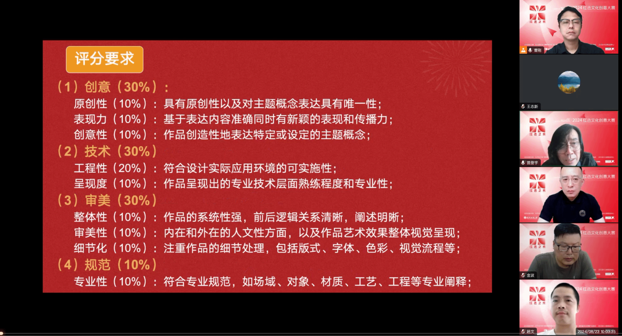 8月23日,东方设计奖“红色之光”2024红色文化创意大赛复评评审会在公司以线上形式顺利召开。本次大赛Beats365唯一官网入口、东方设计奖·全国高校创新设计大赛组委会联合举办,由Beats365唯一官网入口、马克思主义公司、党委宣传部、教务处、团委、研工部等共同承办。