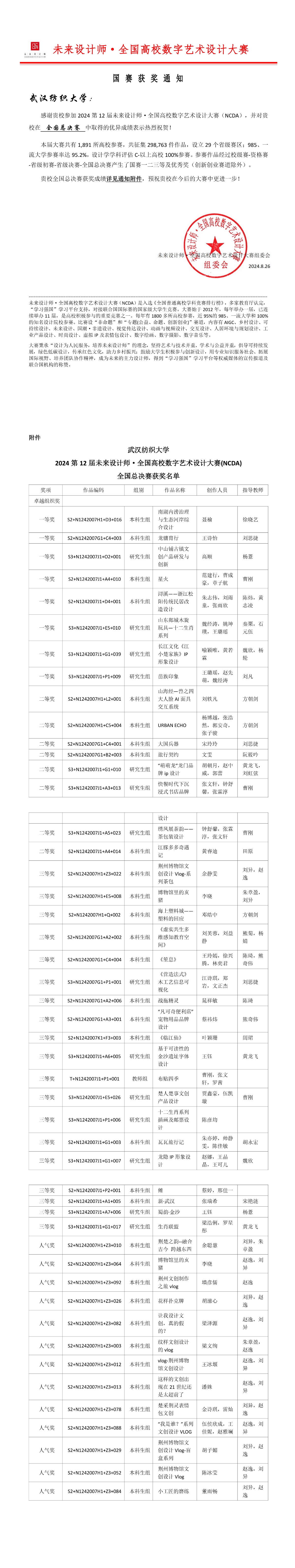 近日,2024年第12届未来设计师·全国高校数字艺术设计大赛(NCDA)全国总决赛获奖名单揭晓。Beats365唯一官网入口斩获全国等级奖项19项,其中一等奖6项、二等奖4项、三等奖9项,另获省级奖117项,充分展现了公司设计学科的办学水平与人才培养质量。