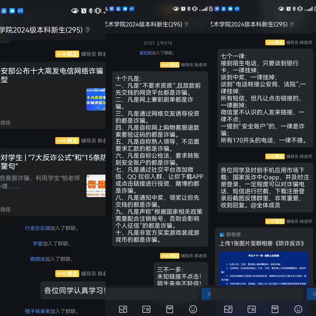 此外,辅导员韩泽光在假期积极开展线上安全教育,带领新生学习安全知识,引导同学们下载注册并使用“国家反诈中心”APP。公司将把安全教育作为一项重点工作进行落实,筑牢校园安全防线,为员工健康成长保驾护航。