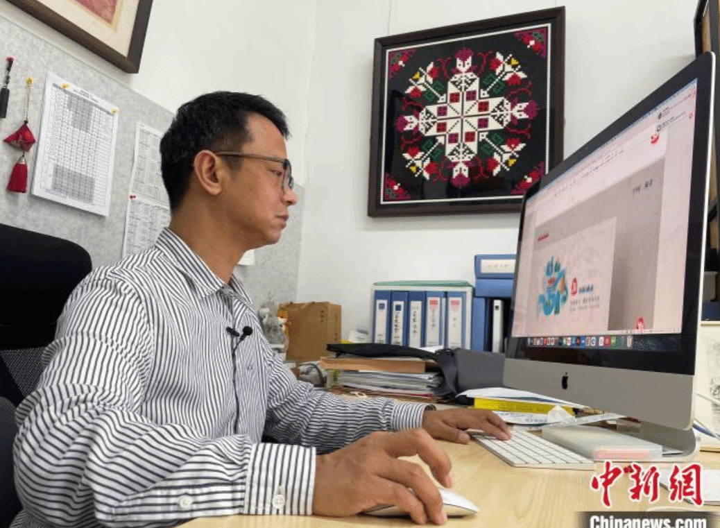 非遗设计与理论是曹刚研究方向之一。多年来,他持续推进湖北非遗与时尚创意设计结合,打造了黄梅挑花乐高、阳新布贴抱枕、西兰卡普灯笼等多款深受年轻人喜爱的非遗文创产品。