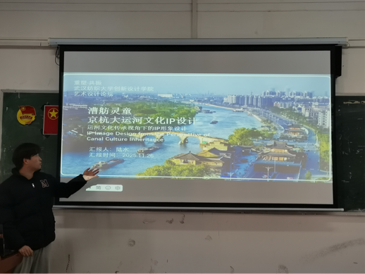 视传2516班的陆水同学,以《大运河文化IP设计》为汇报主题。其设计深度挖掘大运河文化底蕴,将“桥”与“龙”两大核心元素巧妙融合——桥象征大运河的连通属性,龙代表文化的传承与灵动,二者共同构成IP的主体形象。同时,陆水同学还配套制作了系列主题海报,通过色彩层次与构图变化,展现大运河从历史到现代的变迁,内容涵盖文化故事、地域特色等维度,让静态IP形象与动态文化叙事形成共振,为传统文化的现代表达提供了新路径。
