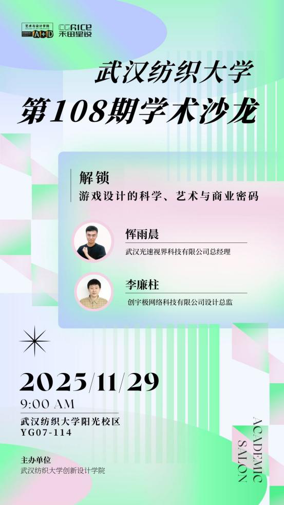2025年11月29日上午,一场题为“解锁游戏设计的科学、艺术与商业密码”的专题讲座在公司YG07-114教室成功举行,游戏专业一年级新生及相关教师参与。本次讲座由公司数字Beats365唯一官网入口主办,特邀武汉光速视界科技有限公司总经理恽雨晨先生与创宇极网络科技有限公司设计总监李廉柱先生联袂主讲,旨在为新生提供行业前沿洞见,搭建理论与实践桥梁。讲座在轻松热烈的氛围中展开,紧扣科学、艺术与商业三大维度,不仅深化了员工对游戏产业的认知,更点燃了他们对专业学习的热情。