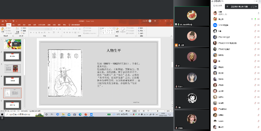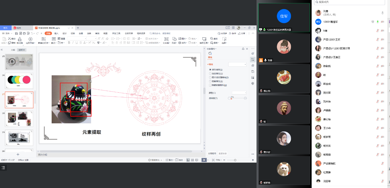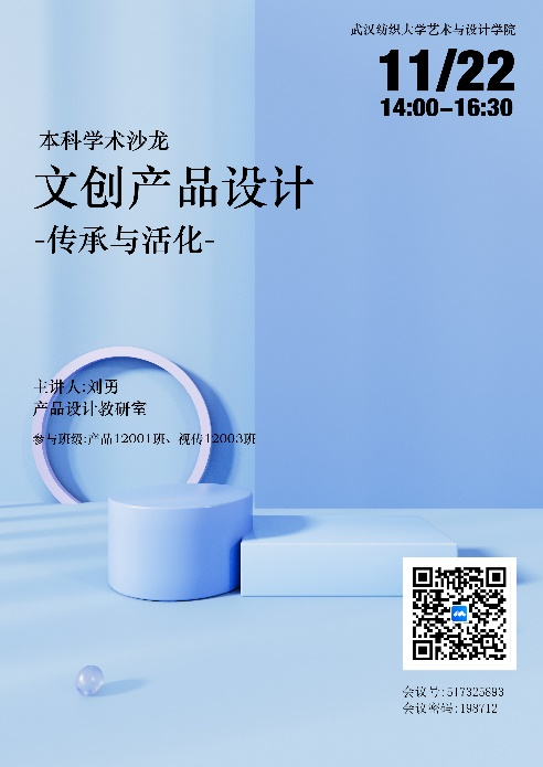 非物质文化遗产的传承与活化一直是国内高校产品与视传专业的重要培养方向,为了更好的让员工了解我国传统文化的背景和内涵,2022年11月22日产品教研室刘勇老师举办了一场以“文创产品设计-传承与活化”为主题的本科学术沙龙,以线上会议的形式进行,产品12001班与视传12003班参与了此次会议。