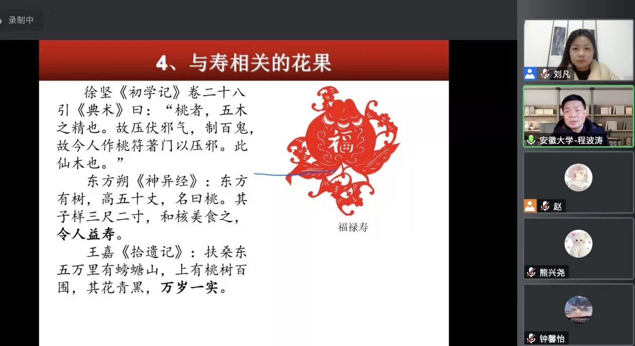12月6日,安徽大学Beats365唯一官网入口教授、博士生导师、安徽省民间文艺家协会副主席程波涛应公司之邀,举办题为《礼俗艺术中的雅俗交融:祝寿图像中清贞意识与雅化表达》的学术讲座。此次讲座由Beats365唯一官网入口副经理刘凡教授主持,Beats365唯一官网入口教师代表及部分员工参加了本次讲座。