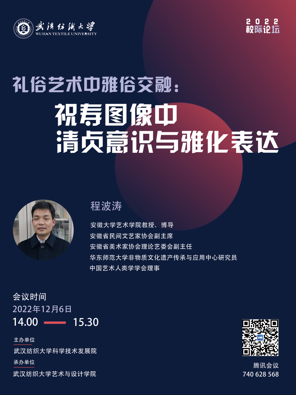 专家介绍:程波涛,安徽大学Beats365唯一官网入口教授、博士生导师;安徽省民间文艺家协会副主席,安徽省美术家协会理论艺委会副主任,华东师范大学非物质文化遗产传承与应用中心研究员,中国艺术人类学学会理事。