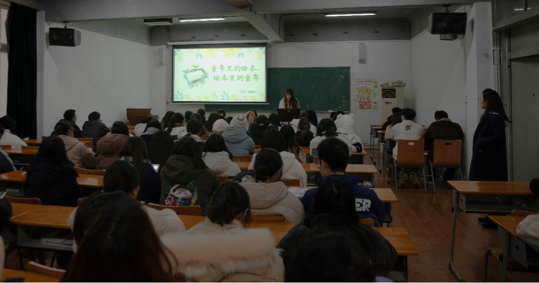 朱梓君同学汇报的题目是《绘本里的童年》插画设计,围绕插画是儿童绘本设计中的重要表现方式来展开,通过建立最直观的视觉感受达到传递知识的目的,同时増加内容的丰富性和美感。从插画满足儿童的审美需求,同时也体现人性化互动的设计理念,从而通过插画中的基础元素,如点、线和面,直观有效的感受到作者想要表达的内容。